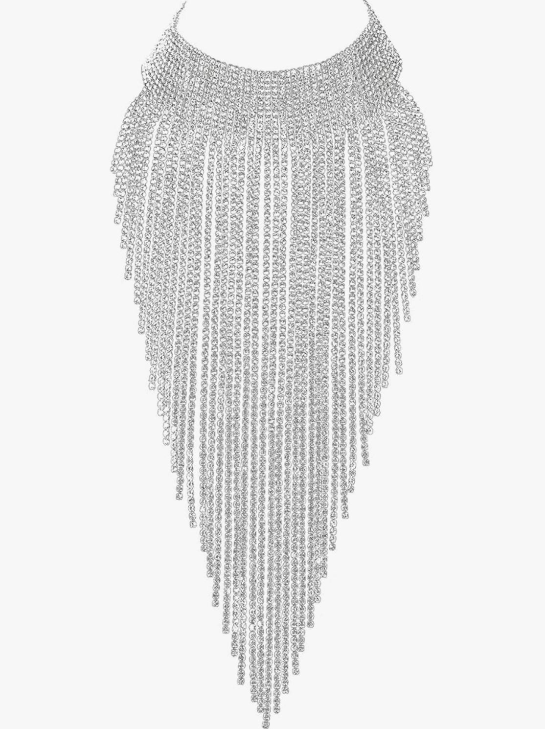 This elegant rhinestone statement necklace adds a touch of glamour to any outfit. With its long length and sparkling rhinestones, it is sure to make a statement and Rock Out your style.