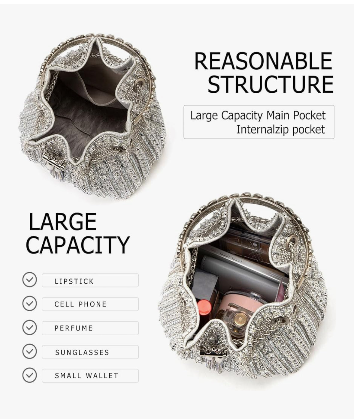 Turn heads with our Sparkly Diamond Evening Clutch Purse. This sleek and edgy accessory is available in a variety of bold colors to amp up your rocker style. Bring some sparkle and elegance to your next evening out with this must-have clutch."